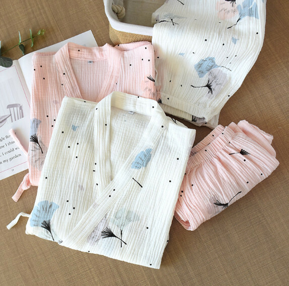 新款春夏薄款全棉紗和服睡衣(白色銀杏)【M-L碼】【下單後聯絡客服確認發貨尺碼】