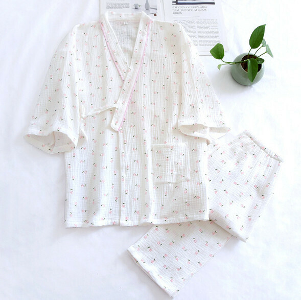 激抵春夏季七分袖純棉紗布和服睡衣(ZHY米黃色兔子)【M-XL碼】【下單後聯絡客服確認發貨尺碼】