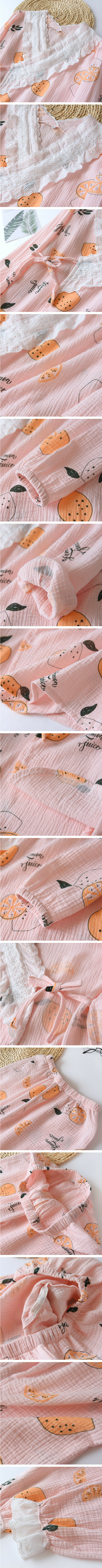 新款春秋夏季全棉縐布長袖和服睡衣(LH粉色卡通檸檬)【M-XL碼】【下單後聯絡客服確認發貨尺碼】