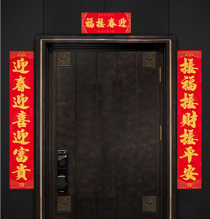 激抵春節家用對聯(【盒裝】古典絨布金粉(自帶背膠) 1.6#【竹報平安福添福_花開富貴財生財 橫福:萬事如意】)