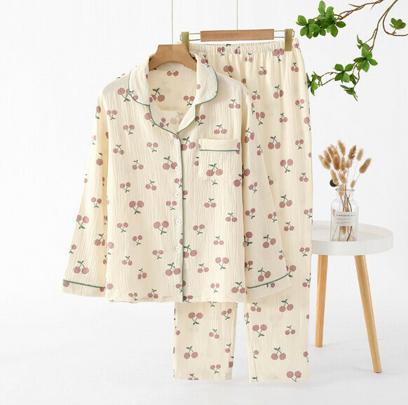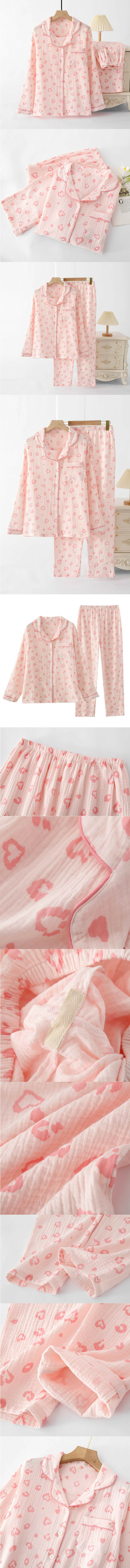 新款春季翻領長袖開衫睡衣套裝(SXL粉色紋)【M-XL碼】【下單後聯絡客服確認發貨尺碼】