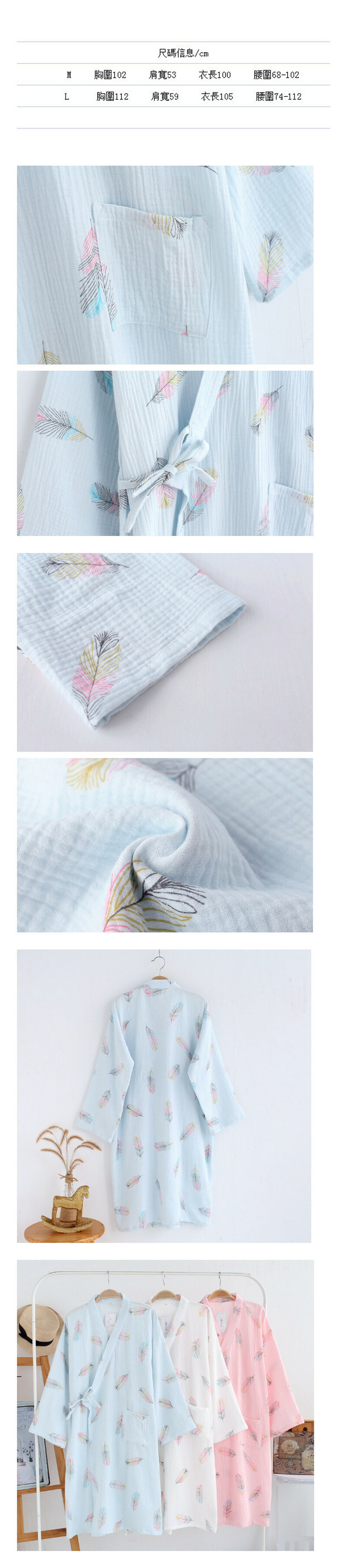 熱賣春夏秋季全棉縐布羽毛睡袍(粉色)【M-L碼】【下單後聯絡客服確認發貨尺碼】