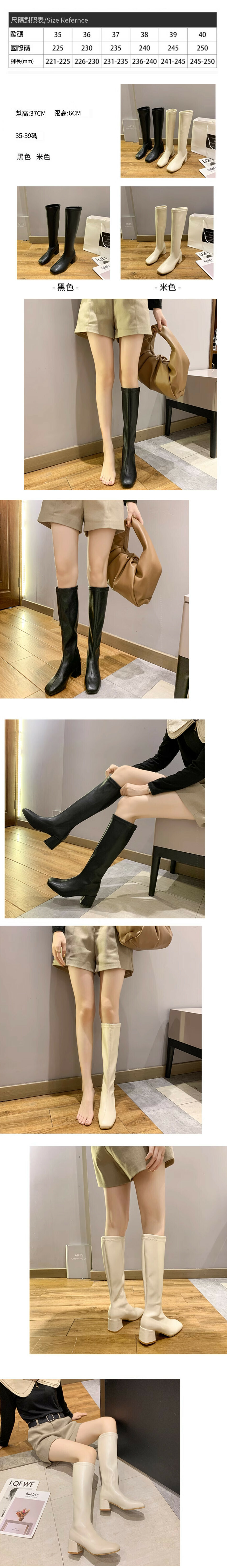 方頭粗跟高跟靴(高筒)