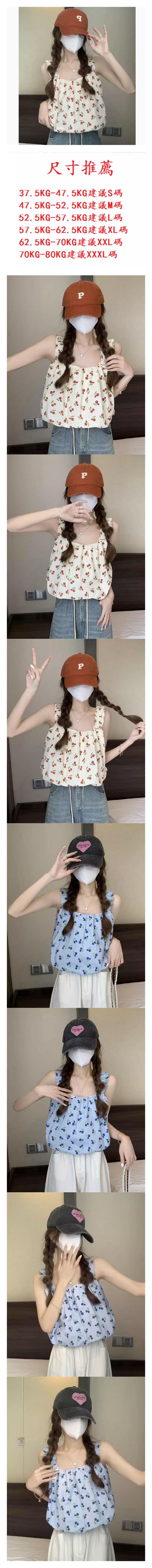 熱賣方領碎花吊帶背心(藍色 尺碼:S-3XL)(下單後請聯絡客服確認發貨尺碼)