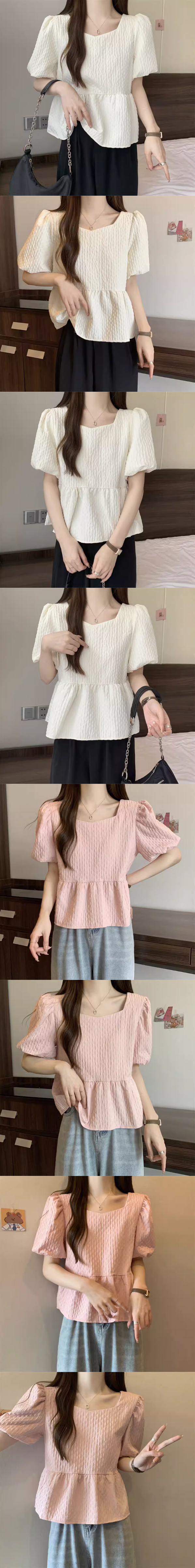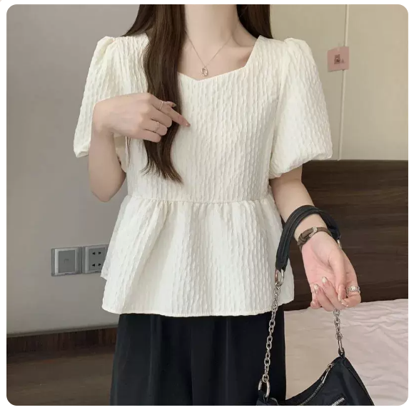 熱賣方領泡泡袖短袖襯衣(白色 尺碼:S-3XL)(下單後請聯絡客服確認發貨尺碼)