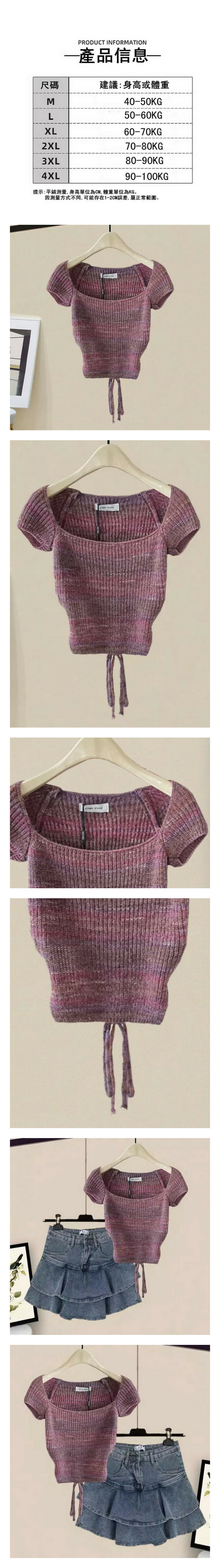 熱賣方領短袖針織衫#單件(紫色)(M-4XL碼) (下單後聯系客服確認尺碼)