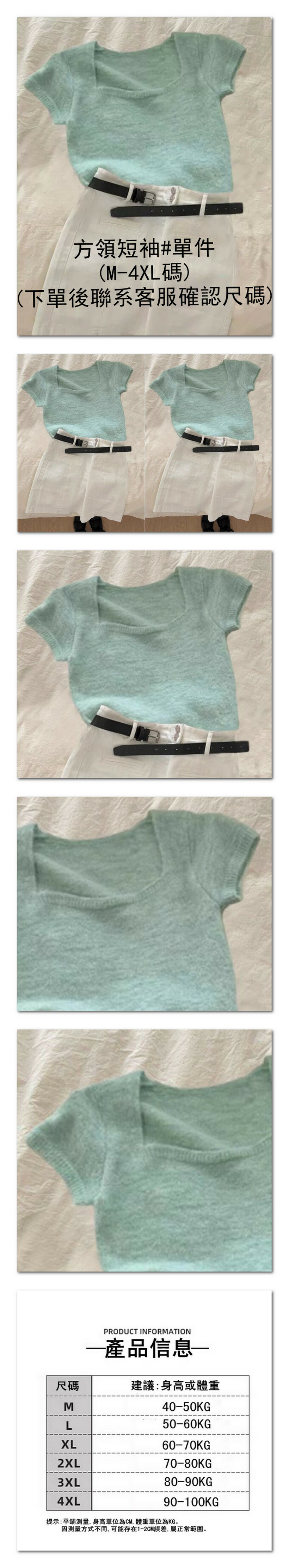 熱賣方領短袖#單件(淺灰綠)(M-4XL碼) (下單後聯系客服確認尺碼)