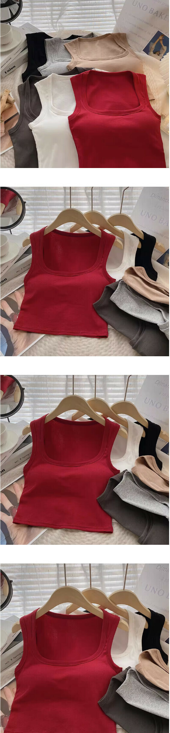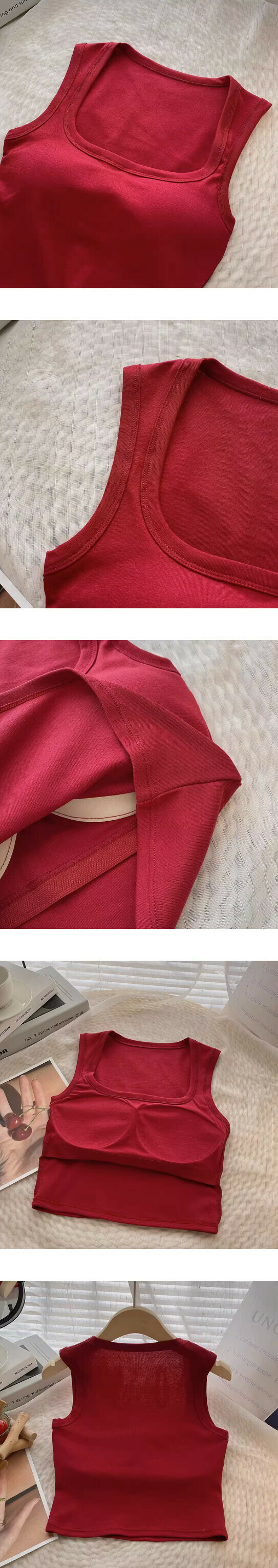 爆款方領露鎖骨短款套頭背心(紅色)【均碼】