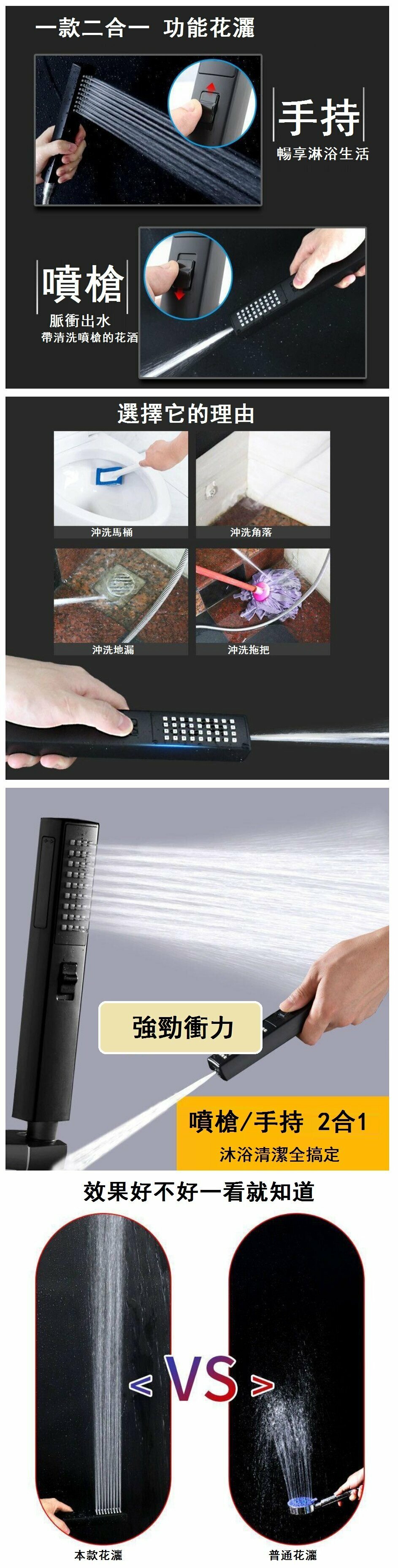 熱推方形增壓二合一淋浴花灑頭(黑色二合一 一鍵邊噴槍模式)
