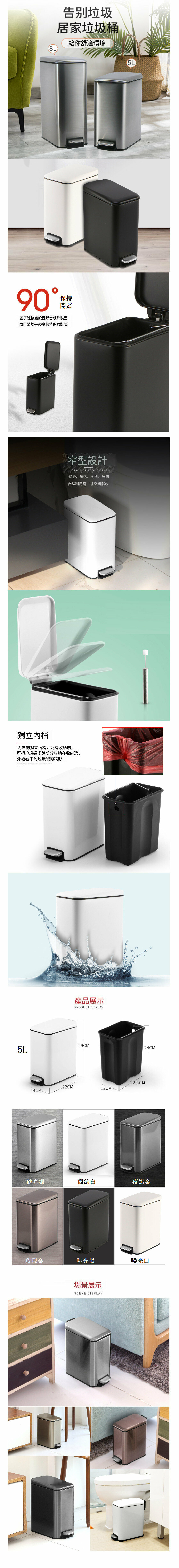 熱推不銹鋼防指紋靜音腳踏垃圾桶 廚房垃圾桶 廁所垃圾桶 廳房垃圾桶 (啞光黑5L)