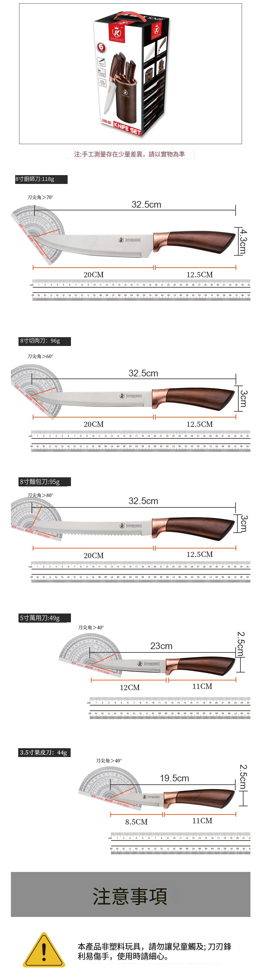 熱推不鏽鋼廚師刀刀具套裝(6件套)