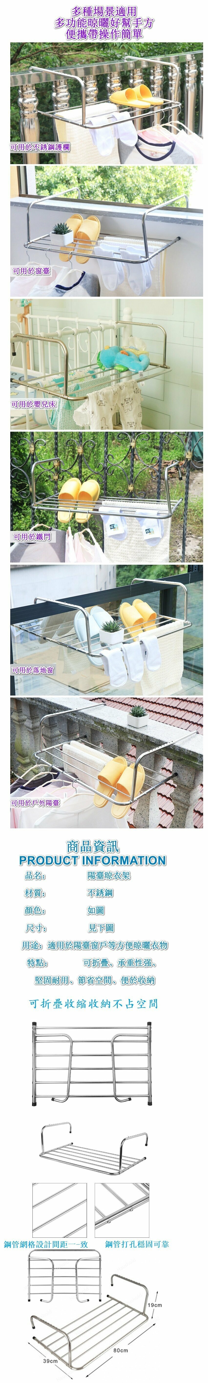 激抵不鏽鋼摺疊式掛架 掛衣架 曬衣架 晾衣架 80cm