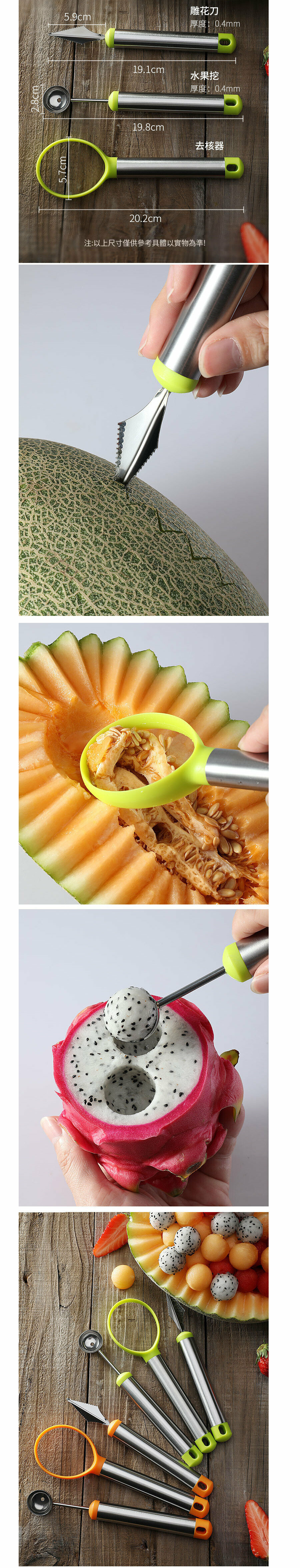 熱賣不鏽鋼水果挖球器三件套(橘色)