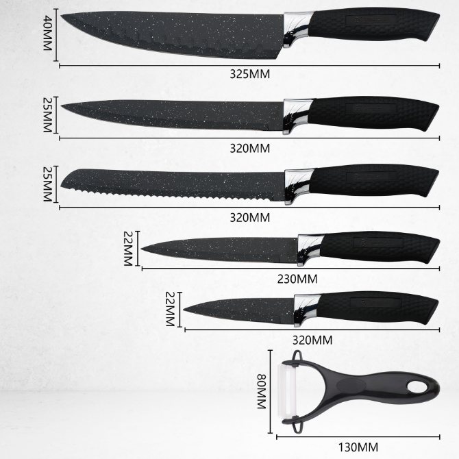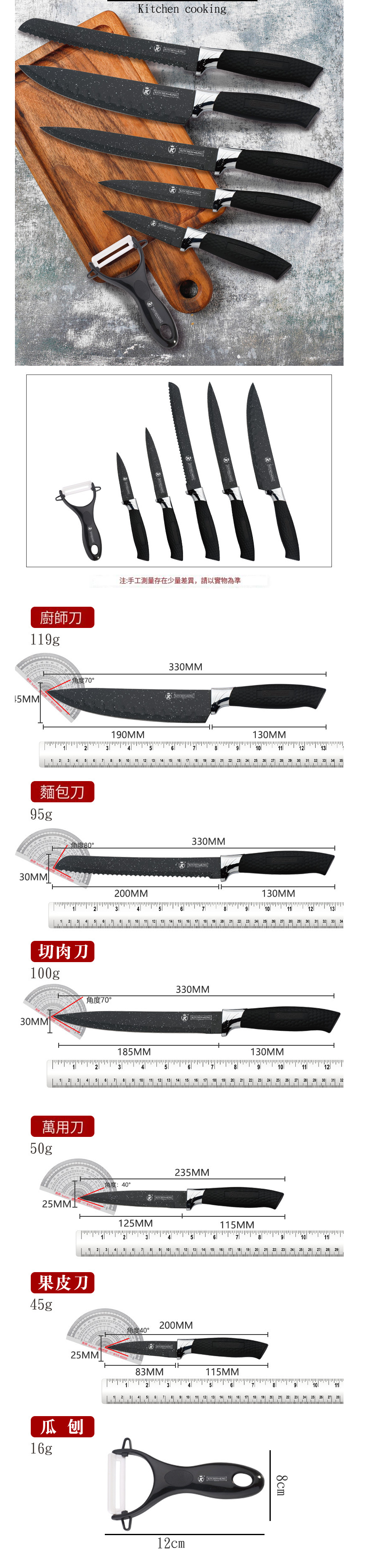 熱推廚房不鏽鋼刀具套裝(黑色6件套)