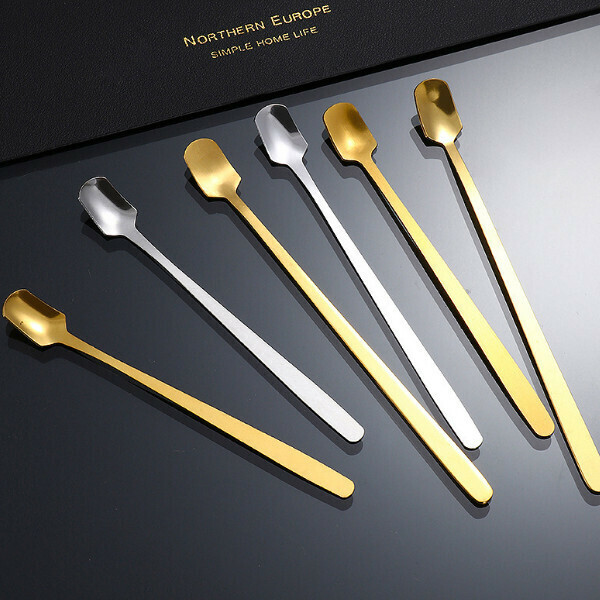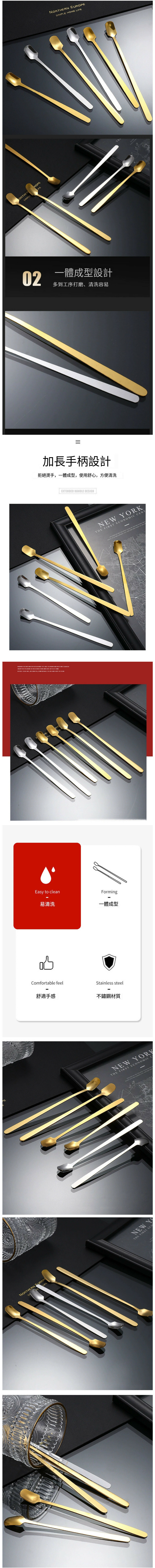 爆款不鏽鋼長柄攪拌勺子 咖啡勺 甜品小勺(水拋銀色)