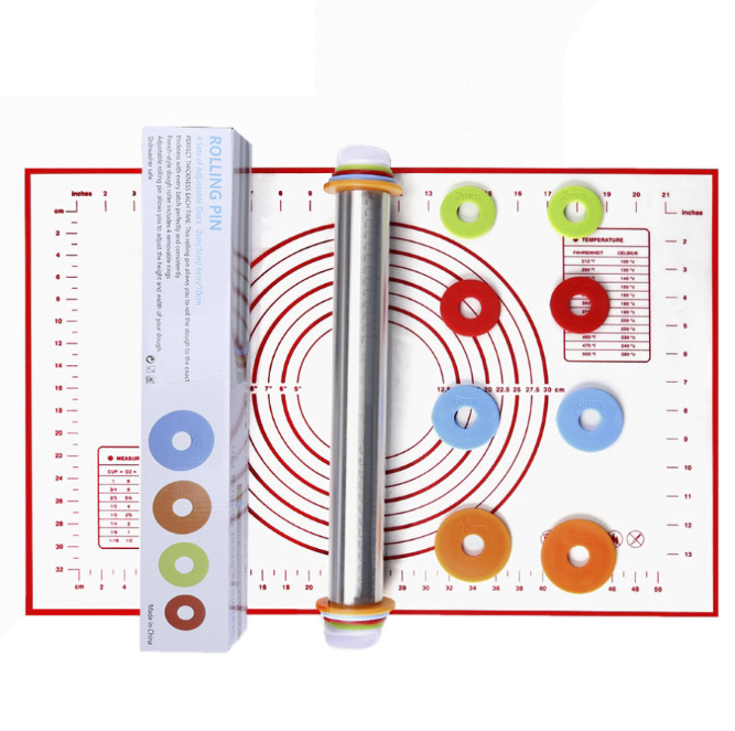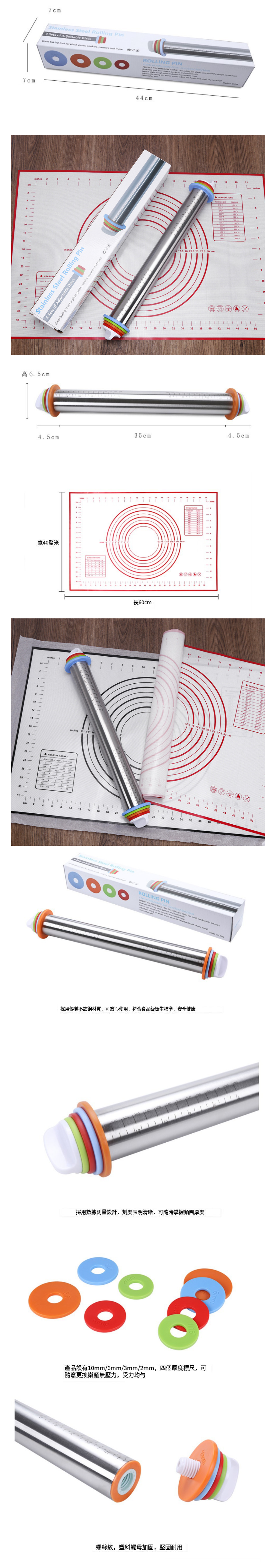 熱賣可調節厚度刻度不鏽鋼擀麵杖(擀麵杖+彩盒)