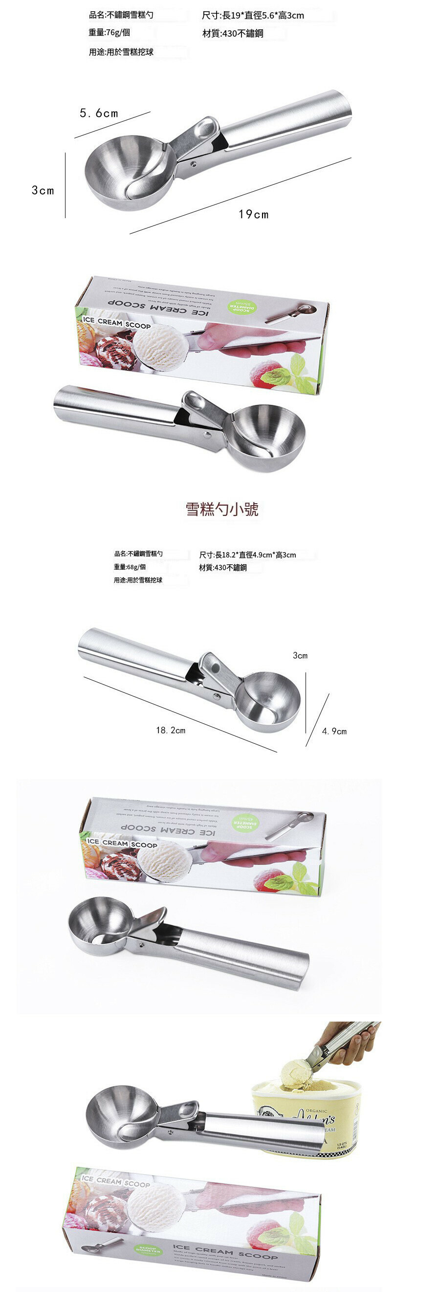 熱推不鏽鋼加厚雪糕勺(大號(彩盒裝)