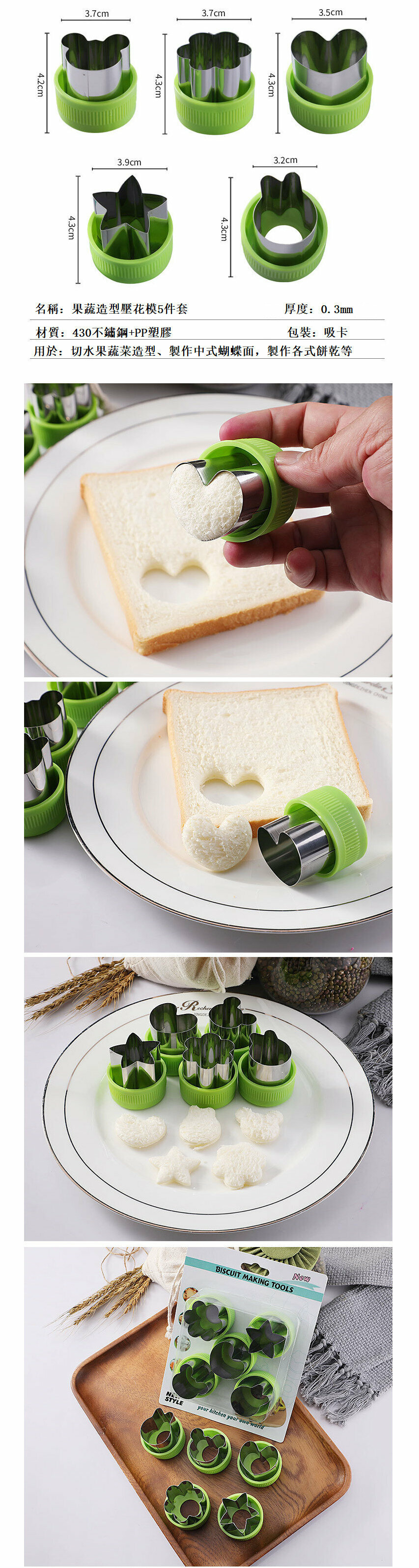 新款不鏽鋼蔬果壓花模具(綠色印花模5件套吸卡)