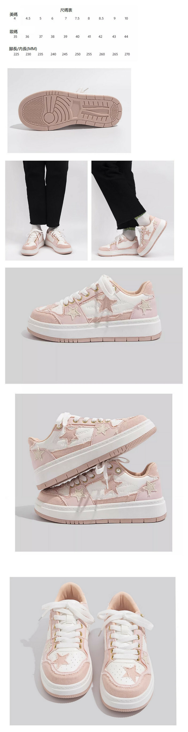 新款星星厚底女運動板鞋(牛仔藍)(尺碼:35-40)(下單後聯絡客服確認發貨尺碼)