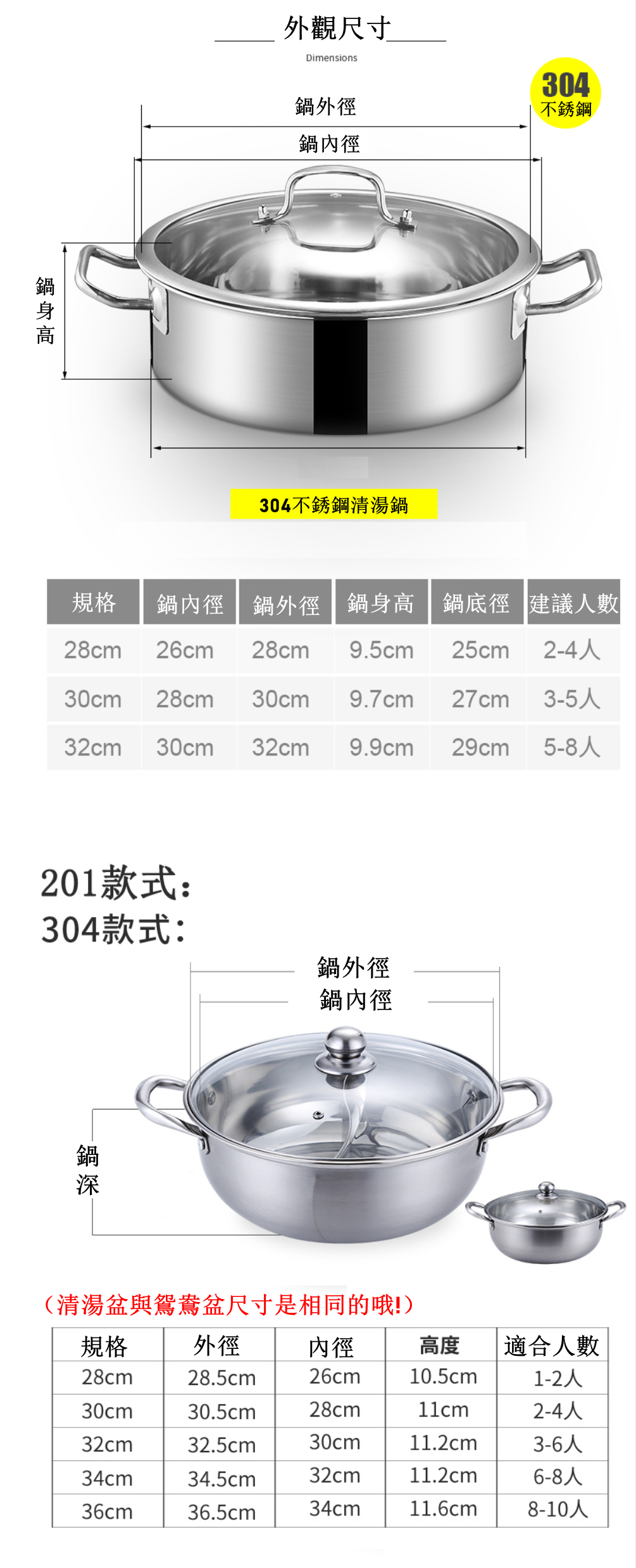 熱推不銹鋼火鍋盆 涮鍋201材質(帶蓋 27.5cm)
