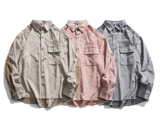 爆款拼接翻領長袖襯衫(粉色)【M-2XL碼】【下單後聯絡客服確認發貨尺碼】