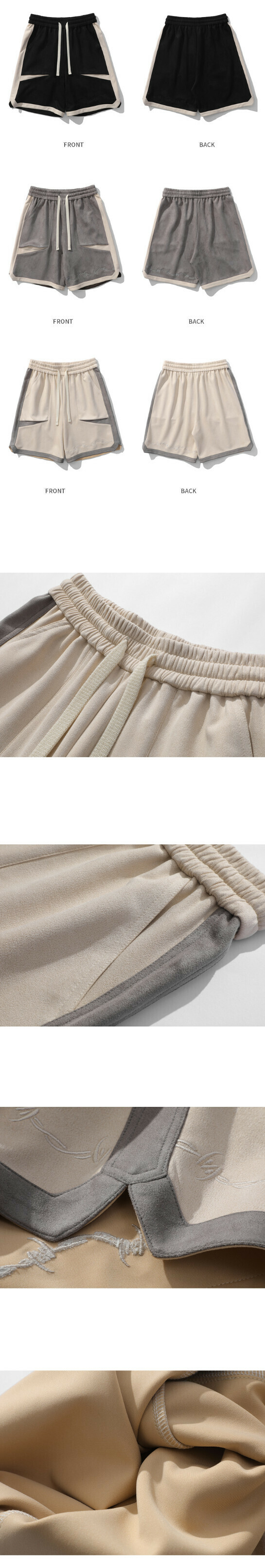 熱賣拼接麂皮絨運動五分褲(黑色)【M-3XL碼】【下單後聯絡客服確認發貨尺碼】#