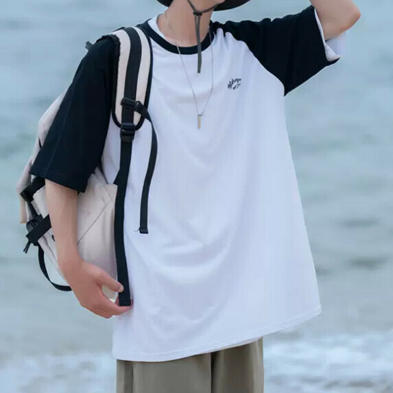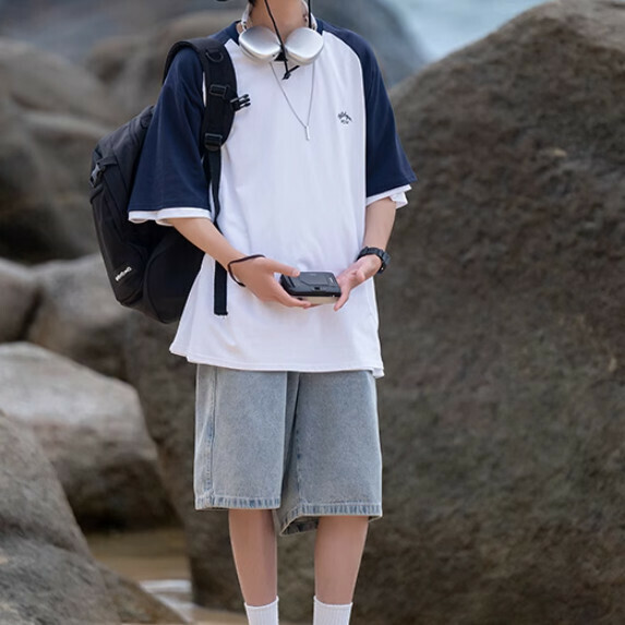 熱賣拼接撞色短袖T恤男夏季(藏青色【M_2XL碼】(下單後聯繫客服確認發貨尺碼)