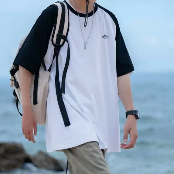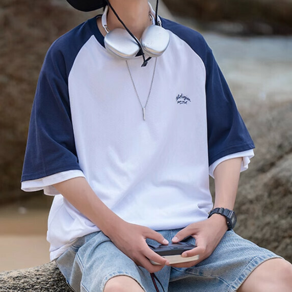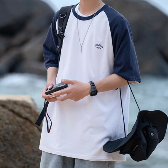 熱賣拼接撞色短袖T恤男夏季(紅色【M_2XL碼】(下單後聯繫客服確認發貨尺碼)