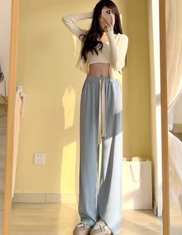 新款直筒夏季薄款冰絲運動褲(淺灰色常規款)(尺碼:S-L)(下單後聯絡客服確認發貨尺碼)】