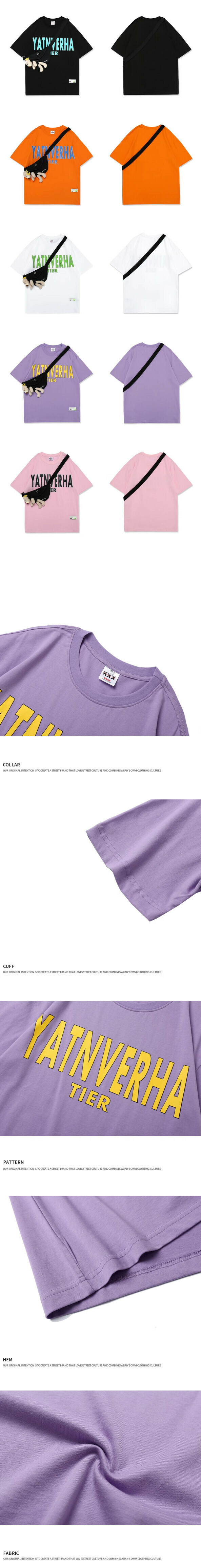 熱推街頭嘻哈自帶小熊挎包短袖T卹(粉色)【M-2XL碼】【下單後聯絡客服確認發貨尺碼】