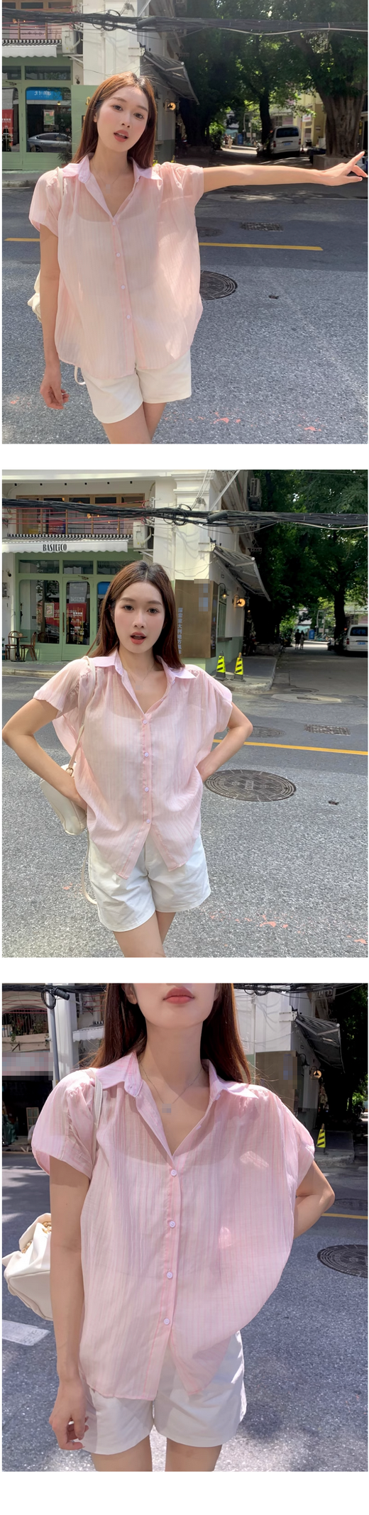 新款條紋寬松輕薄襯衫女(卡其色)( 尺碼:均碼)