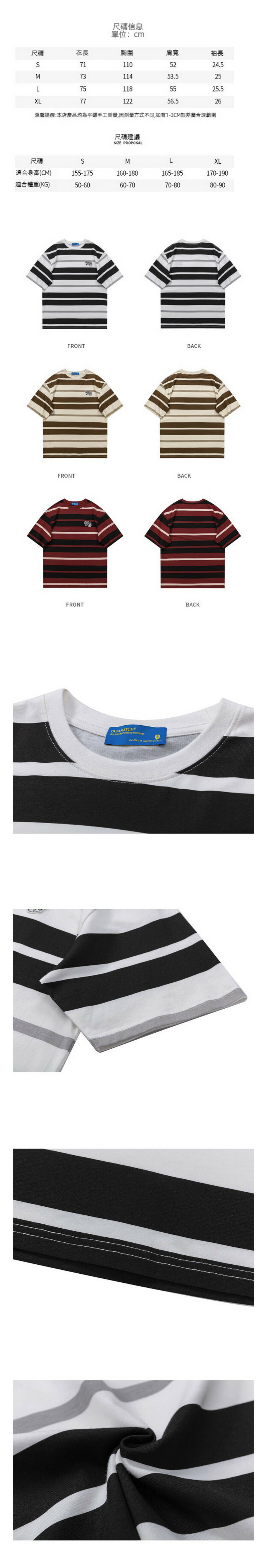 新款條紋貼佈純棉短袖T卹(米杏色)【S-XL碼】【下單後聯絡客服確認發貨尺碼】