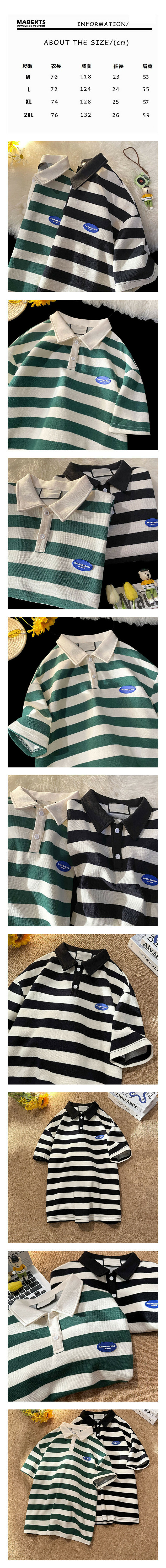 熱推條紋短袖T恤男翻領(綠色【M_2XL碼】(下單後聯繫客服確認發貨尺碼))