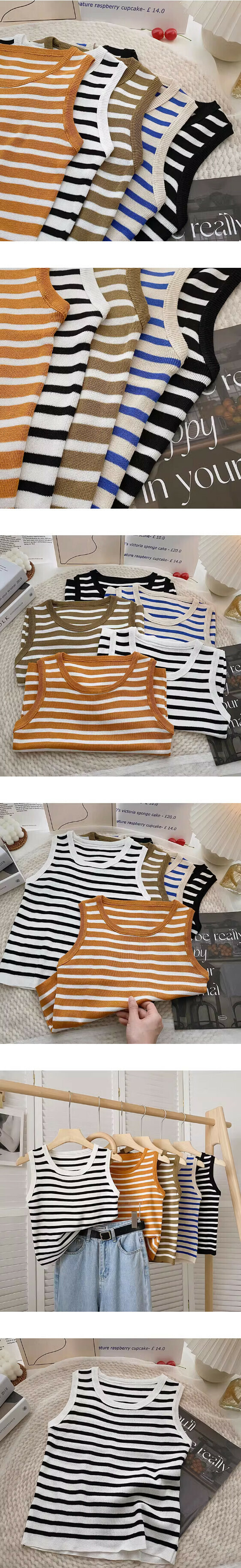 熱賣條紋無袖短款背心(黑色)【均碼】