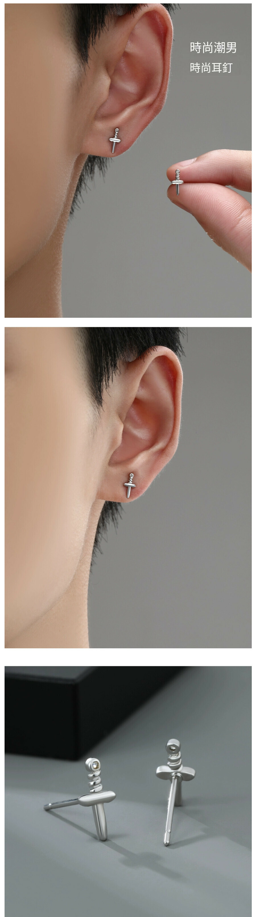 熱推耳釘耳環十字架男士(白色一對)