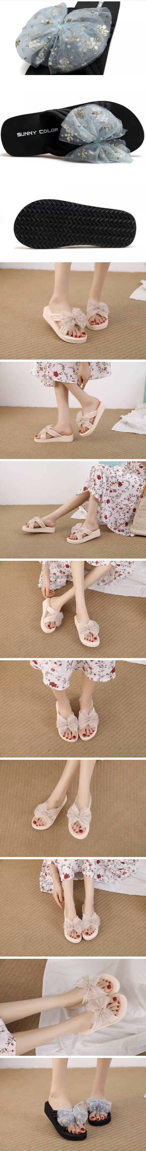 激抵夏季防滑蝴蝶結涼拖鞋(txe-093-10黑色 平跟2.5cm)【34-41碼】【下單後聯絡客服確認發貨尺碼】】