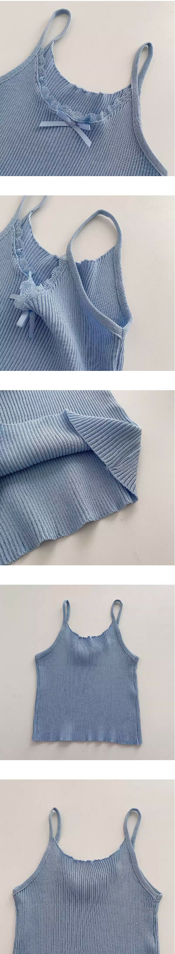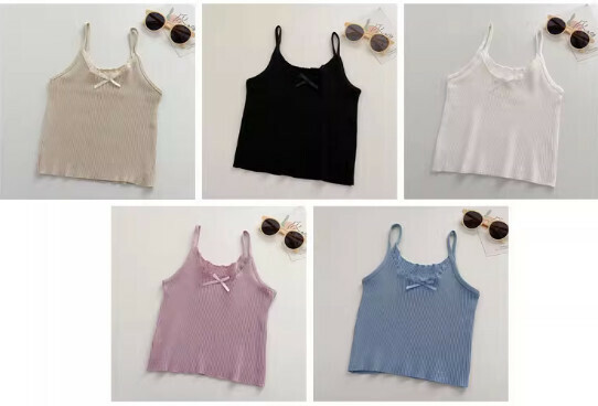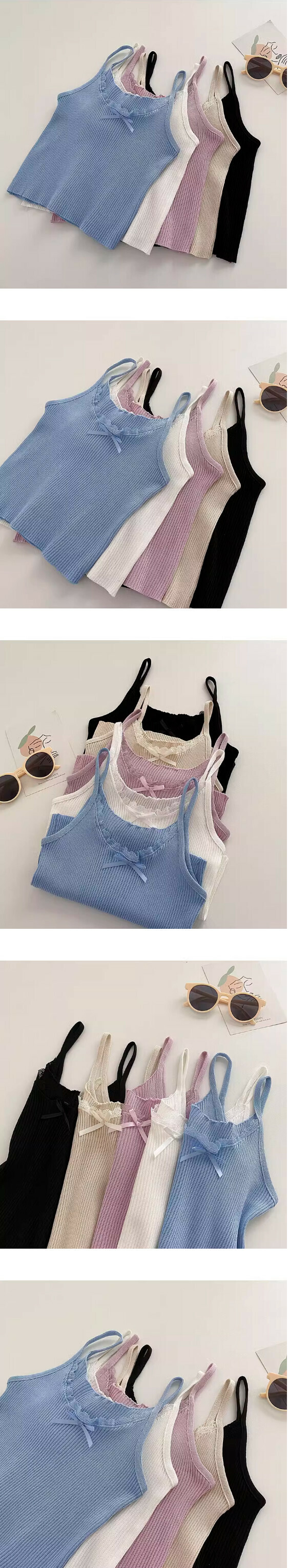 熱賣夏季蝴蝶結蕾絲邊拼接短款背心(紫粉色)【均碼】