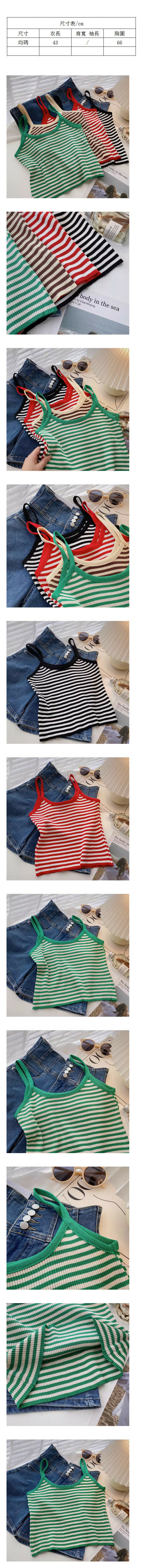 新款夏季拼色條紋針織背心(卡其色)【均碼】