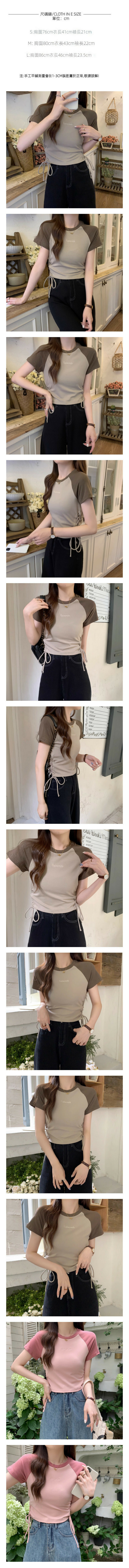 夏季撞色插肩袖t卹(卡其色)【尺碼:S-L】【下單後聯絡客服確認發貨尺碼】