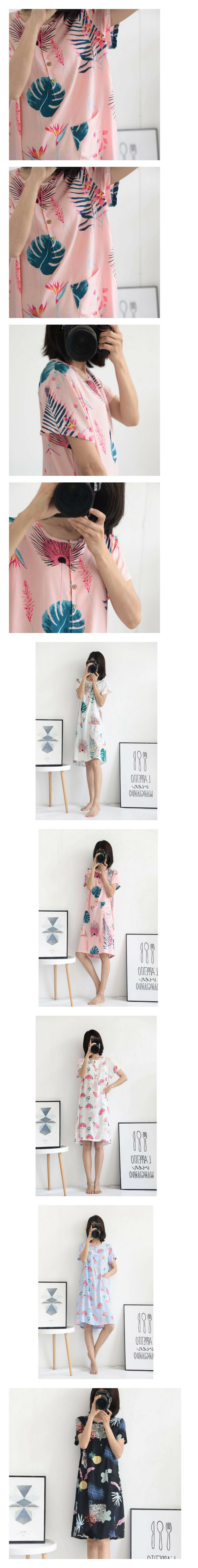 熱賣夏季人棉短袖睡裙(黑色樹葉菠蘿)【均碼】【適合90-135磅左右的人穿】