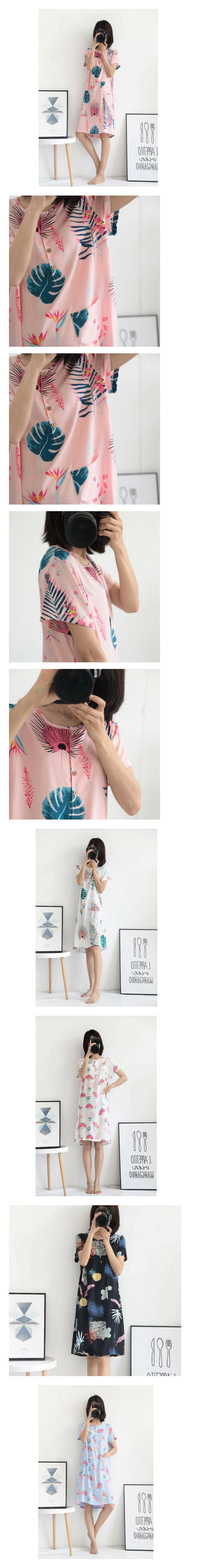 新款夏季人棉短袖睡裙(藍色西瓜)【均碼】【適合90-135磅左右的人穿】