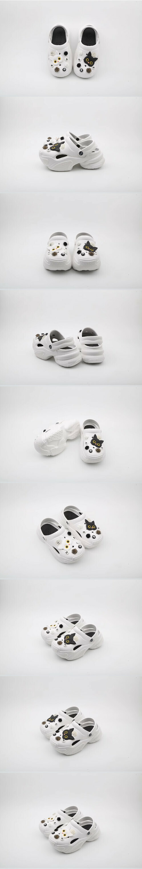 爆款夏季老爹厚底洞洞包頭拖鞋(1917-1 黑底黑白貓)【36-41碼】【下單後聯絡客服確認發貨尺碼】】