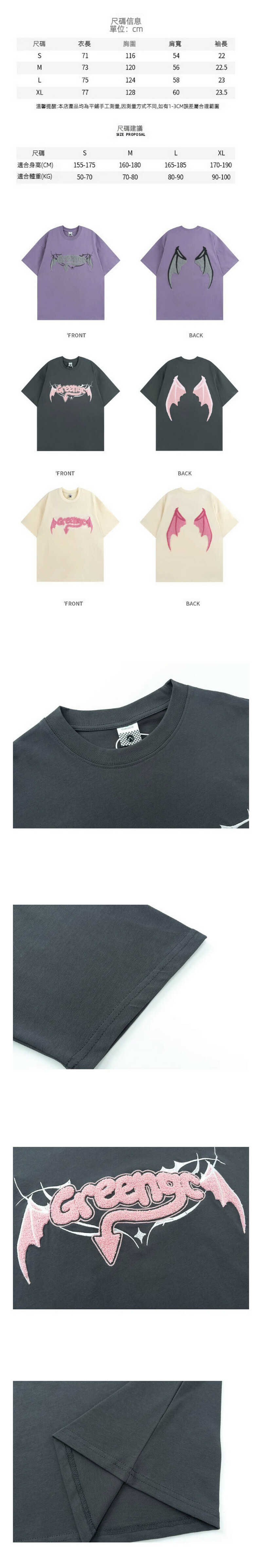 新款夏季惡魔字母毛巾繡短袖T卹(杏色)【S-XL碼】【下單後聯絡客服確認發貨尺碼】