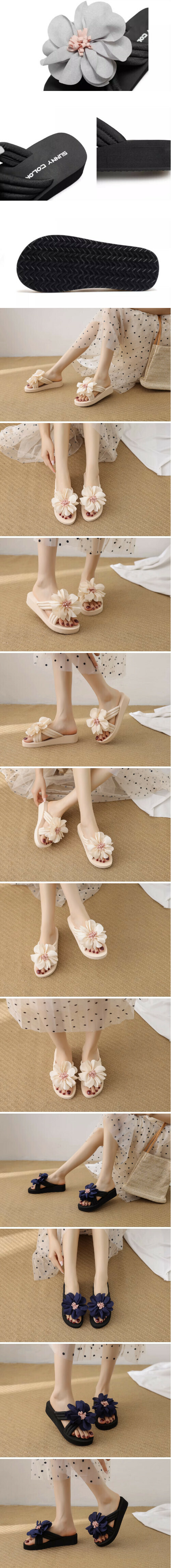 新款夏季布藝大花涼拖鞋(XE-093-75 米白色 平跟2.5cm)【34-41碼】【下單後聯絡客服確認發貨尺碼】】