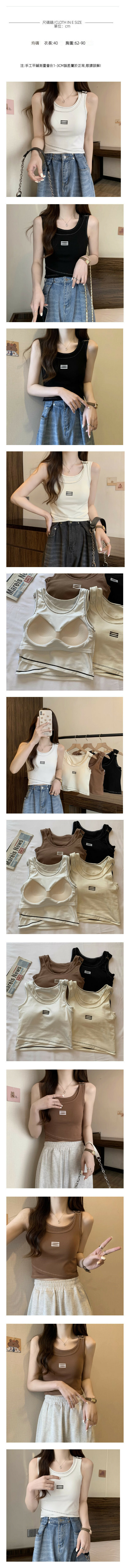 夏季帶胸墊假兩件背心(黑色)【均碼】