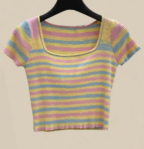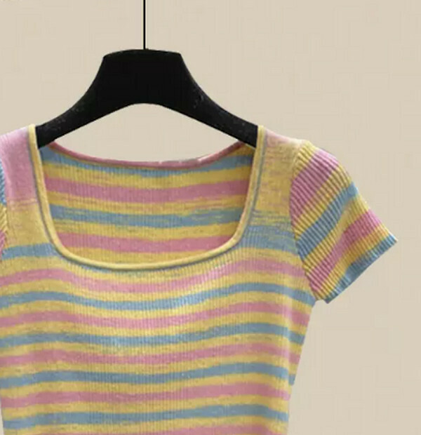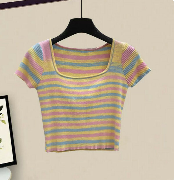 熱賣夏季胖妹方領減齡短款上衣#單件(彩色)(M-4XL碼) (下單後聯系客服確認尺碼)