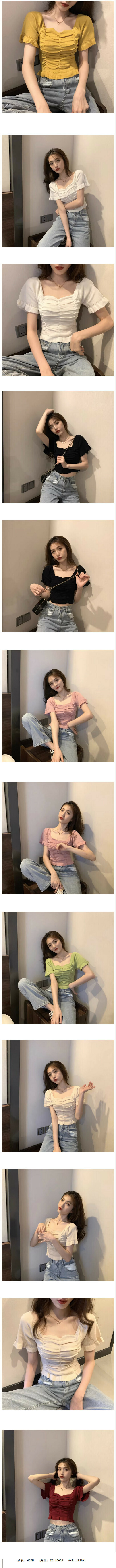 熱賣夏季法式方領鎖骨泡泡短袖T恤(綠色)(尺碼:均碼)