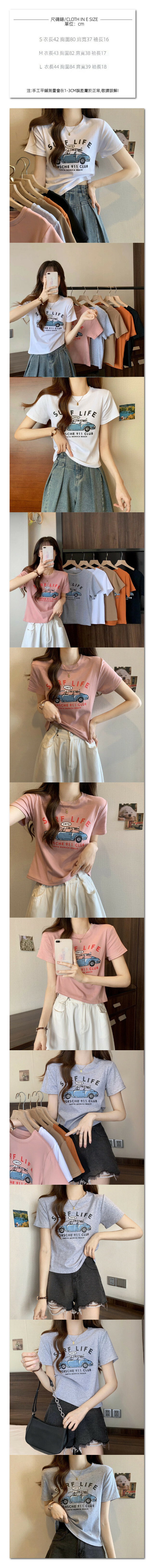 夏季字母印花正肩短袖T卹(粉色)【尺碼:S-L】【下單後聯絡客服確認發貨尺碼】