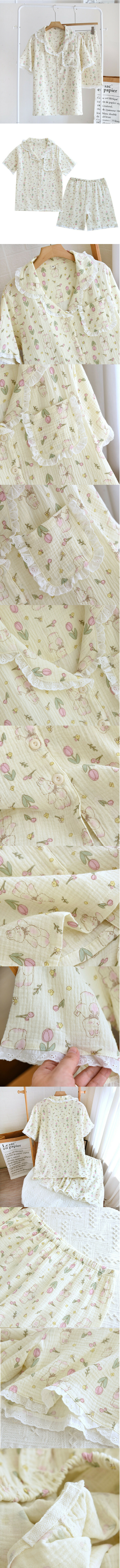 熱賣夏季寬鬆休閒縐布花邊睡衣(LJ花苞奶兔)【M-XL碼】【下單後聯絡客服確認發貨尺碼】