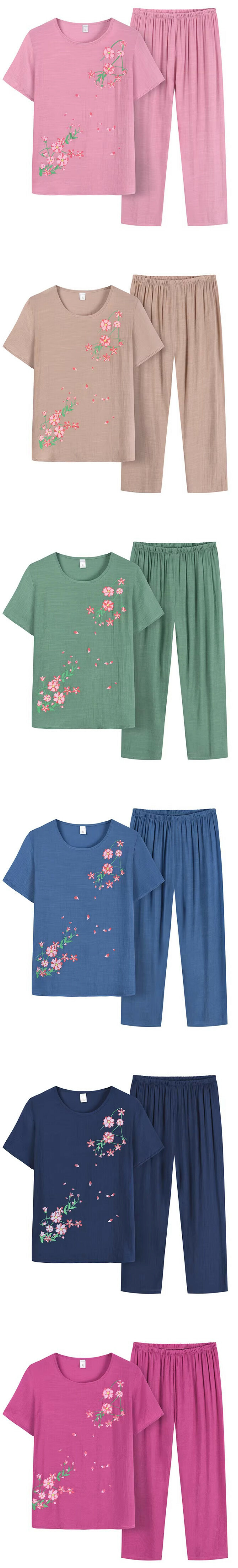 爆款夏季中老年棉麻休閒套裝(駝色)【尺碼:XL-4XL】【下單後聯絡客服確認發貨尺碼】